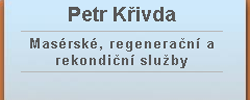 <p>krivda-masaze@seznam.cz</p> 708 00 Ostrava-Poruba <p>Petr Křivda, tel.: 732 829 567, e-mail: krivda-masaze@seznam.cz</p><p>Zradí - li tě zdraví, vytrácí se krása a smysl života a teprve pak si uvědomíš, že všechny ostatní věci jsou najednou pomíjivé a nahraditelné.</p>